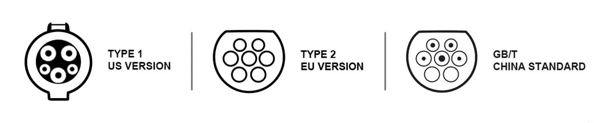 el estándar IEC 62196-2 (Mennekes, Tipo 2) europeo de la UE, y el estándar GB/T 20234 chino