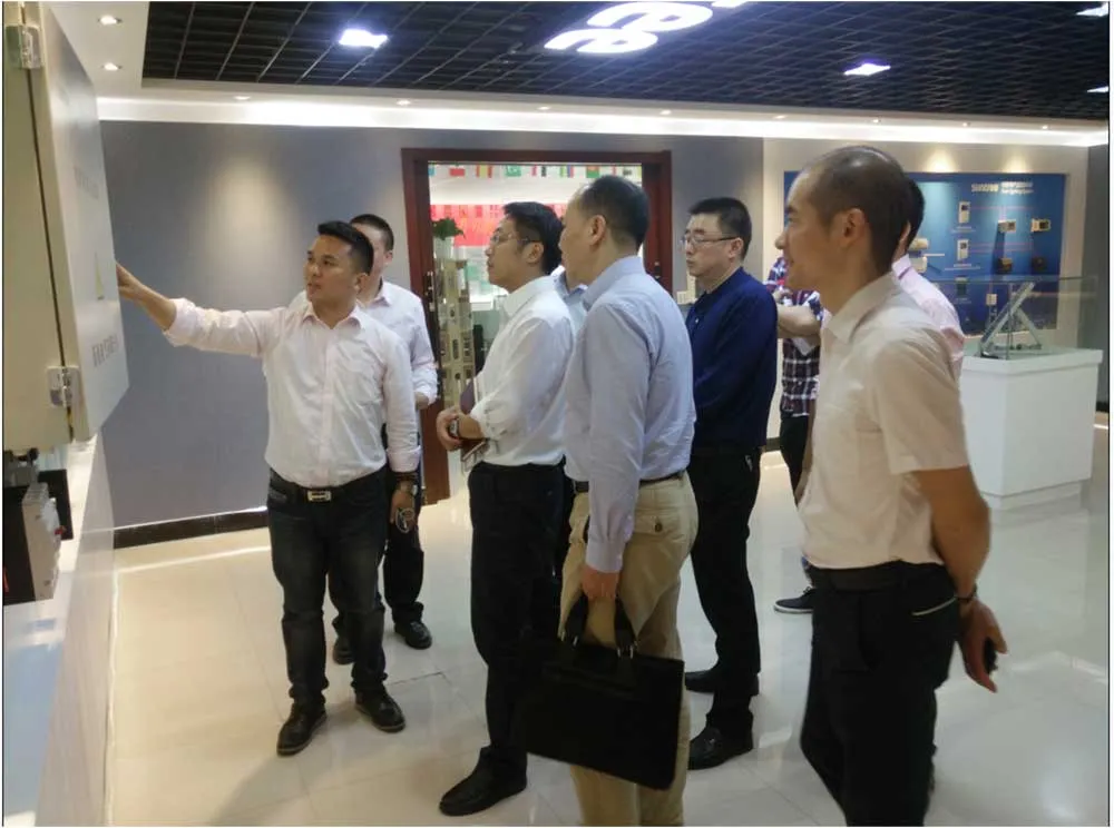 El grupo de investigación visitó el salón de exposiciones integrado de productos en el cuarto piso del Parque Industrial Suntree, y el gerente general de marketing, Zeng Xianwen, presentó en detalle al grupo de investigación la exhibición del producto, sus características y su valor de uso; después de escuchar la explicación, el equipo de investigación expresó un alto grado de aprecio.