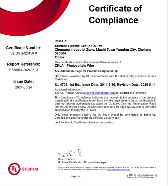 Cables FV de Suntree obtienen certificación UL:Calidad y Seguridad