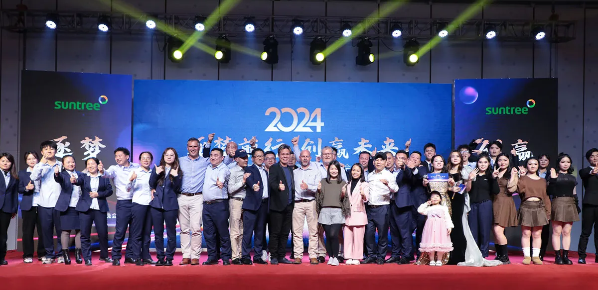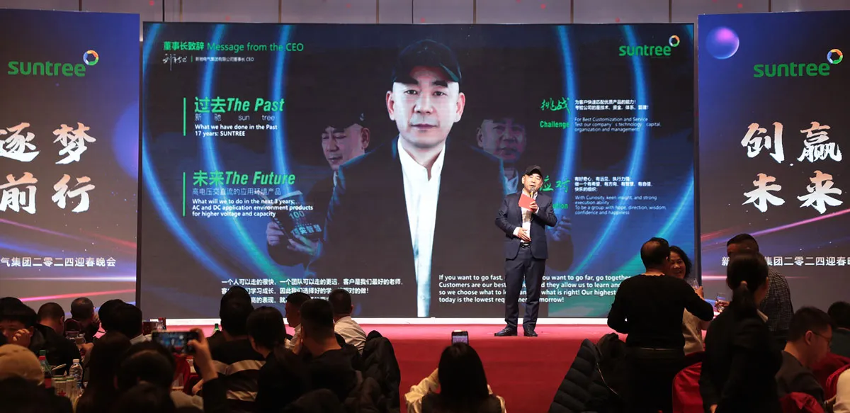 On January 14, 2024, Suntree Electric Group Co., LTD. 's annual event - Suntree Group End-Year Ceremony was successfully held in Xinxinya Hotel. The theme of the annual conference is "Chasing the future", which aims to review the achievements of the past year and look forward to the future development blueprint.El tema de la conferencia anual es "Perseguir el futuro", con el objetivo de revisar los logros del año pasado y vislumbrar el plan de desarrollo futuro.