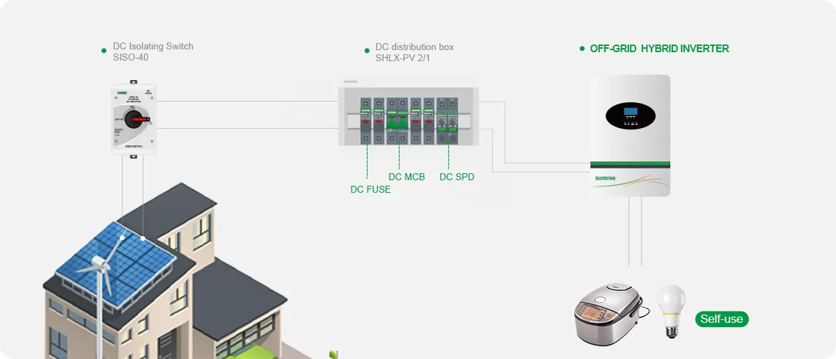 • Si la potencia fotovoltaica es insuficiente, el PV puede combinarse con la red y la batería para suministrar la carga.