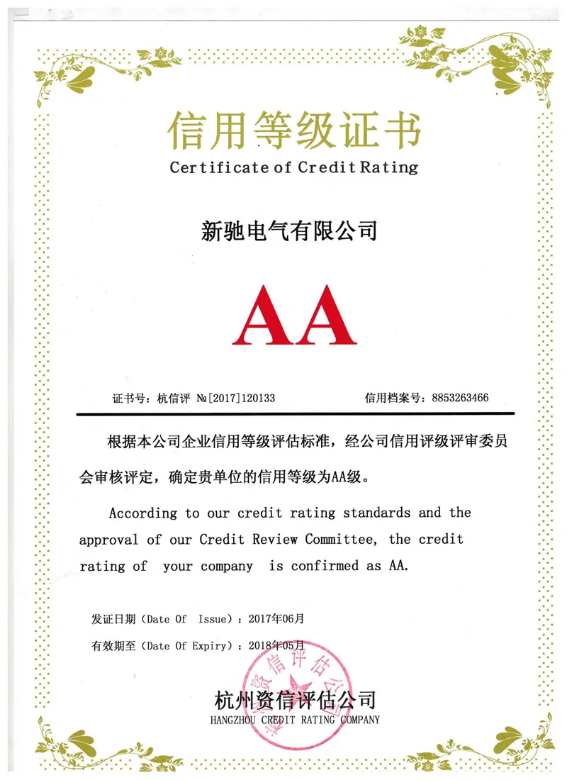 Recientemente, mediante el trabajo de evaluación de crédito empresarial realizado por la compañía de calificación de crédito de Hangzhou, el Grupo Xinchi, gracias a su sólido sistema de gestión de crédito y construcción de crédito, fue galardonado con el título de "Empresa con Crédito AA".