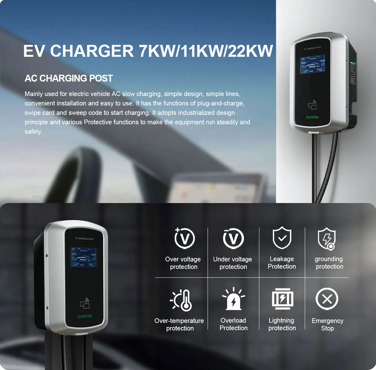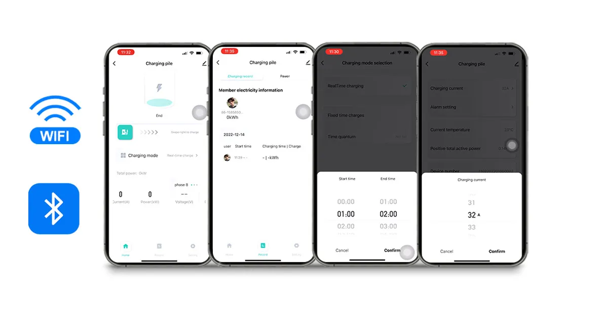 • Plug-in and Charge / RFID card WIFI & Bluetooth (APP) / 4G / Ethernet